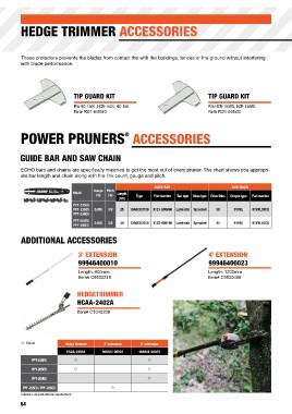 ECHO bars and chains are specifically matched to get the most out of every pruner. The chart shows you appropri-