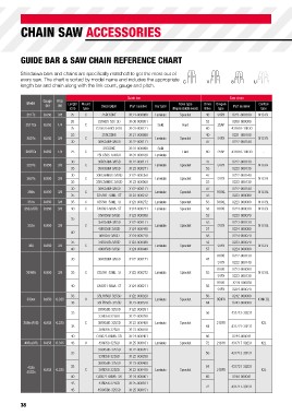 GUIDE BAR & SAW CHAIN REFERENCE CHART